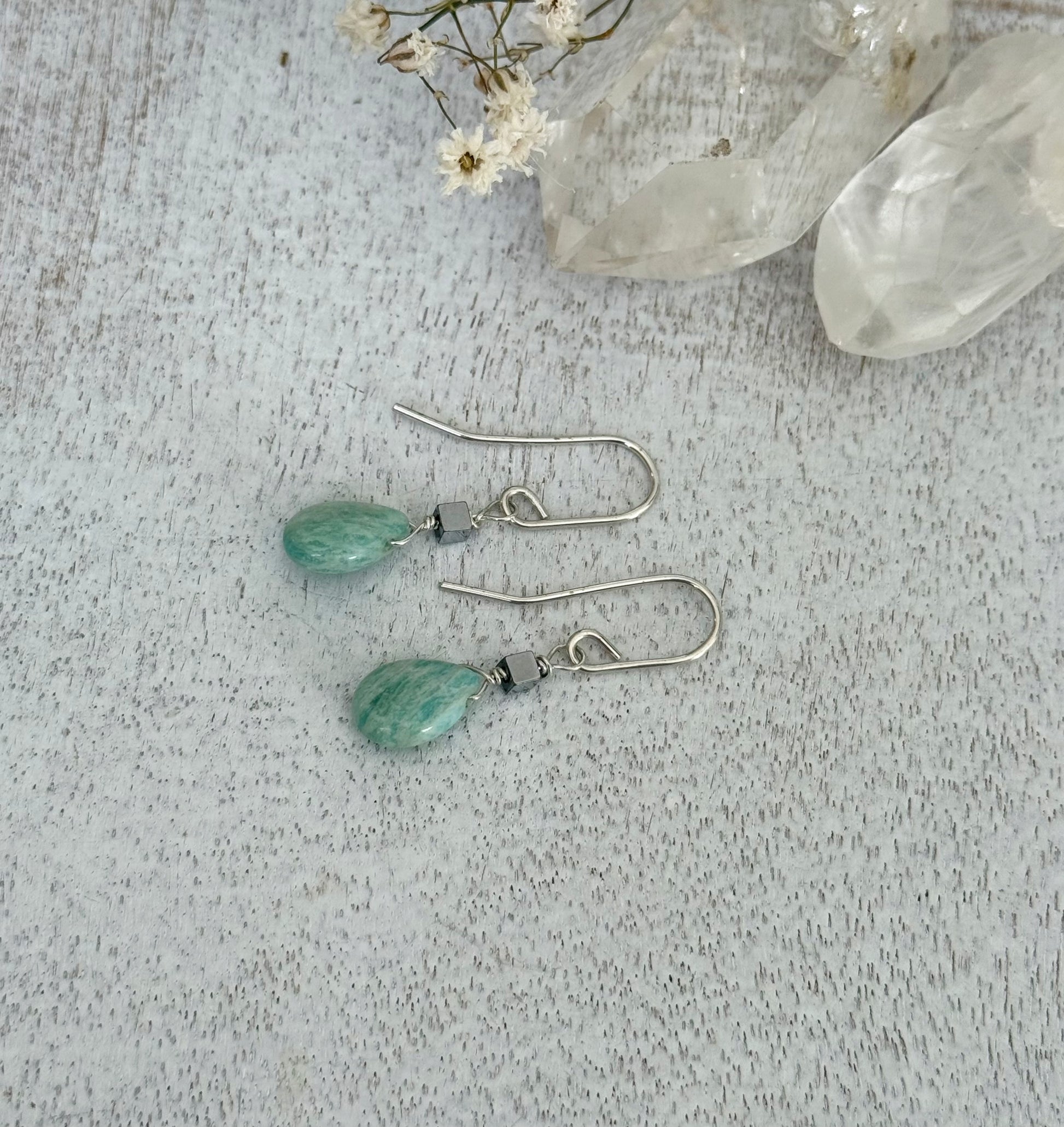 Amazonite Hematite Sterling Silver Earrings